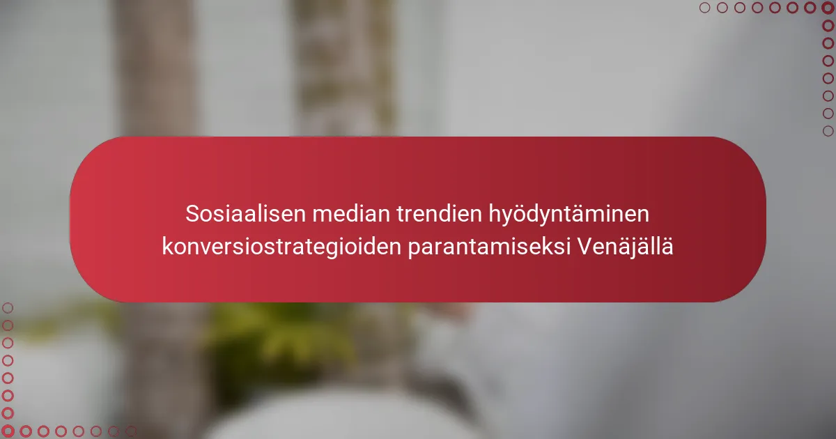 Venäjällä sosiaalisen median trendien hyödyntäminen voi merkittävästi parantaa konversiostrategioita sovittamalla markkinointitoimet kehittyviin käyttäytymismalleihin. Hyödyntämällä lyhyiden videoiden, suoratoiston ja niche-yhteisöjen suosiota yritykset voivat sitouttaa kohdeyleisöjään tehokkaammin ja saavuttaa korkeammat konversioluvut.